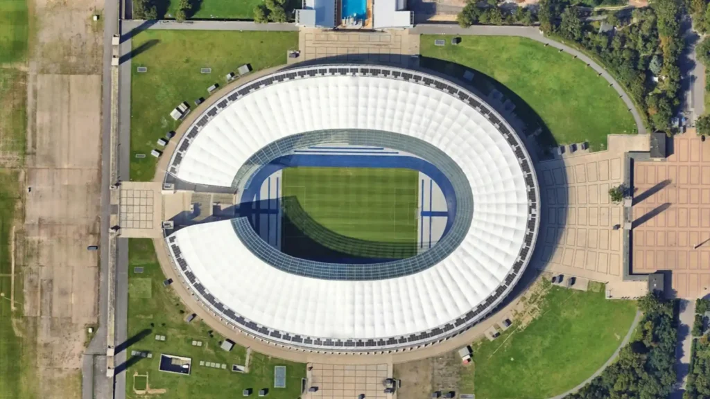 Oval stadiums are the most traditional and versatile design. Originally inspired by running tracks, they allow multi-sport use — football, athletics, concerts, and even rugby.