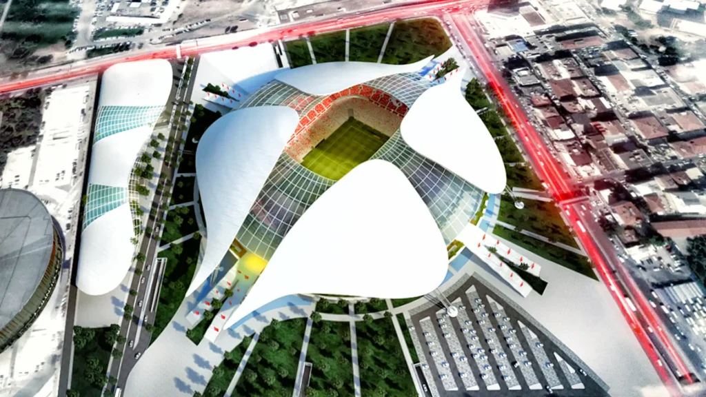 - Highlights: The stadium will feature a retractable roof, solar panels, and advanced crowd-flow systems.