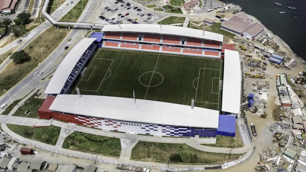 Though modest in size, this waterfront stadium captures the essence of Central American football — vibrant, passionate, and community-driven.